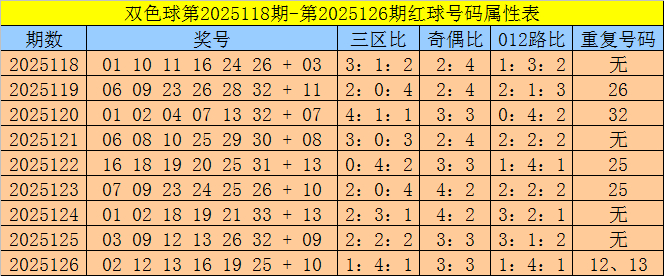 红球重号:上期开出2个重迭号码:12、13,最近9期有5期开出了重迭号码,本期瞻望重号转冷,不看好出现重迭号码。