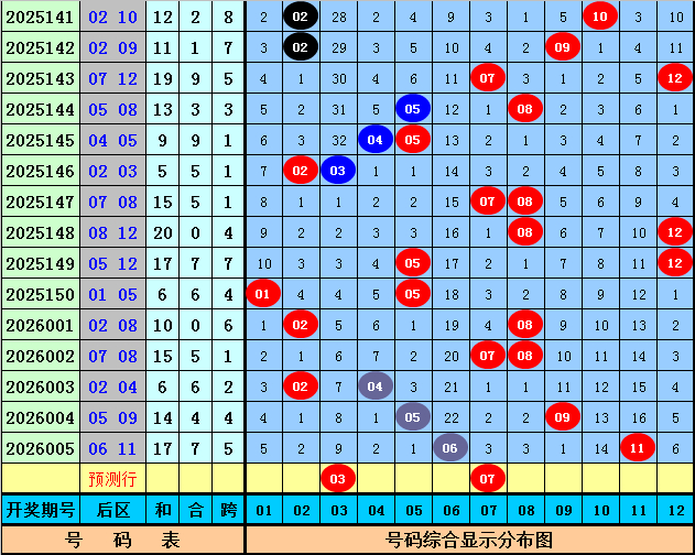 三少第2026006期体彩大乐透后区余数分析:上期后区开出奖号06和11,奖号余数为0路和1路,本期后区排斥2路余数号码,五码参考03、04、07、09、11。